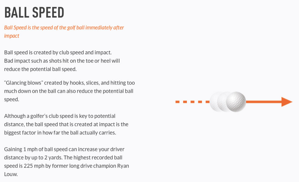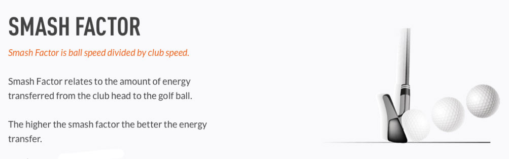 SMASH FACTOR Il rapporto della velocità della palla alla velocità della testa del bastone. Quanto veloce esce la palla dal bastone.