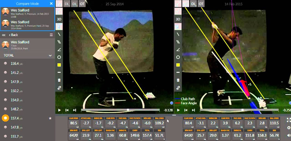 COMPARAZIONE: oltre ai video questa funzione permette di confrontare i 27 parametri di impatto e volo dell'allievo con quelli di un top player.